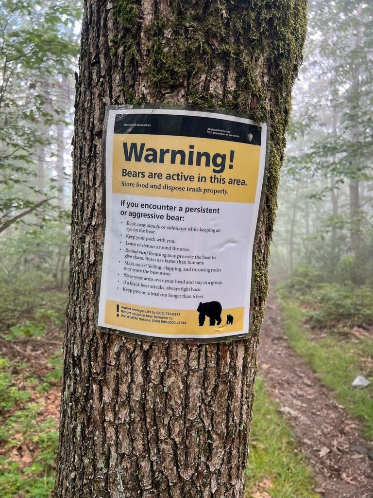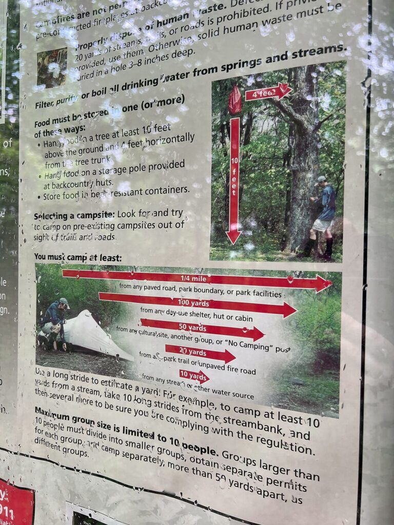 Today we left the hotel, got a ride back to Rockfish Gap, and entered Shenandoah National Park! We were greeted with these camping rules: