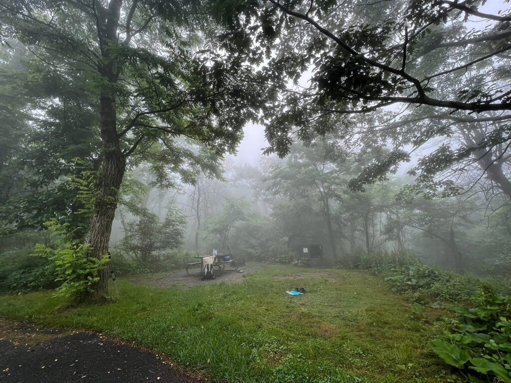 Eventually, we ended up at one of the Shenandoah National Park campgrounds (Loft Mountain Campground) and decided to cough up $30 for a site for the night.