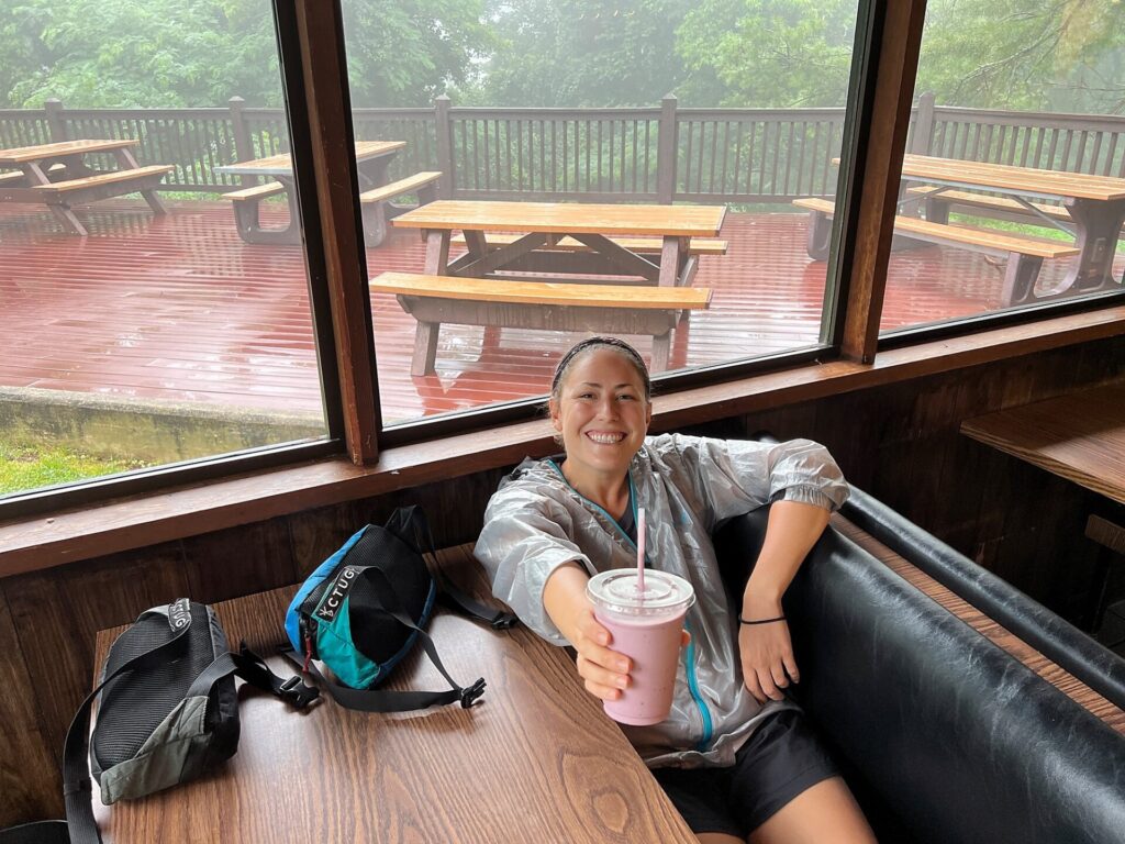 Around 11:00, we got a warm meal and a blackberry milkshake at the Loft Mountain Wayside! 🤤