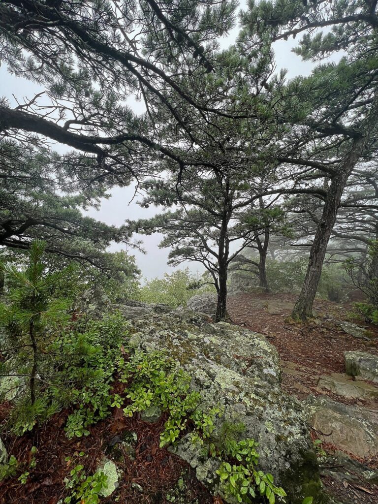 A lot of the trail in the park has felt like a garden maze with tall, closed-in brush. The soft, cushy ground has soaked our feet but has also been gentle to the touch and on our feet while hiking.