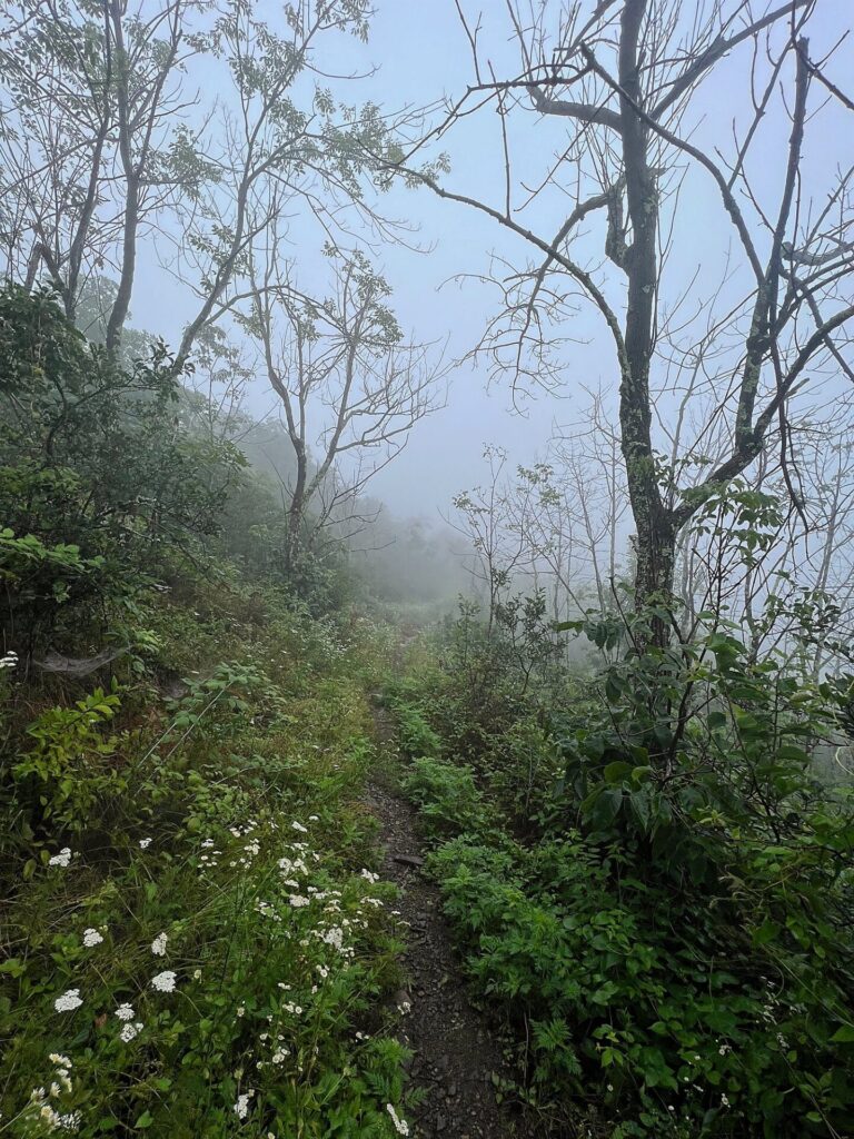 It’s been a while since we’ve been in the “ping-pong ball” of mist and fog, but yesterday it returned. However, this “ping-pong ball” was different from the mist and fog we experienced in the early weeks of trail.