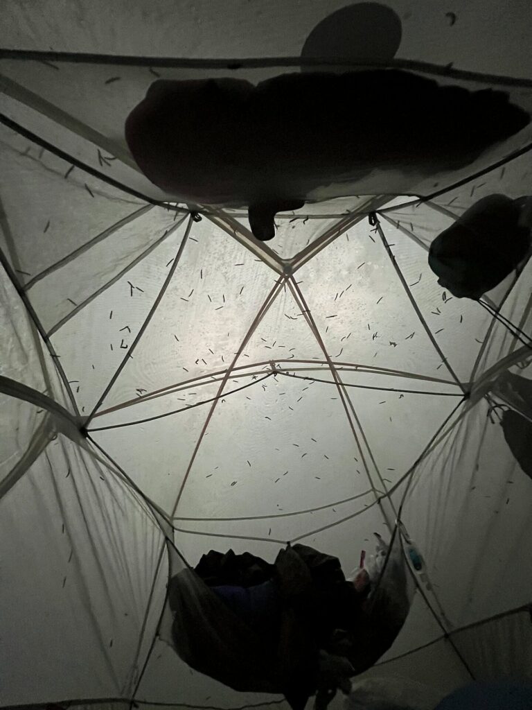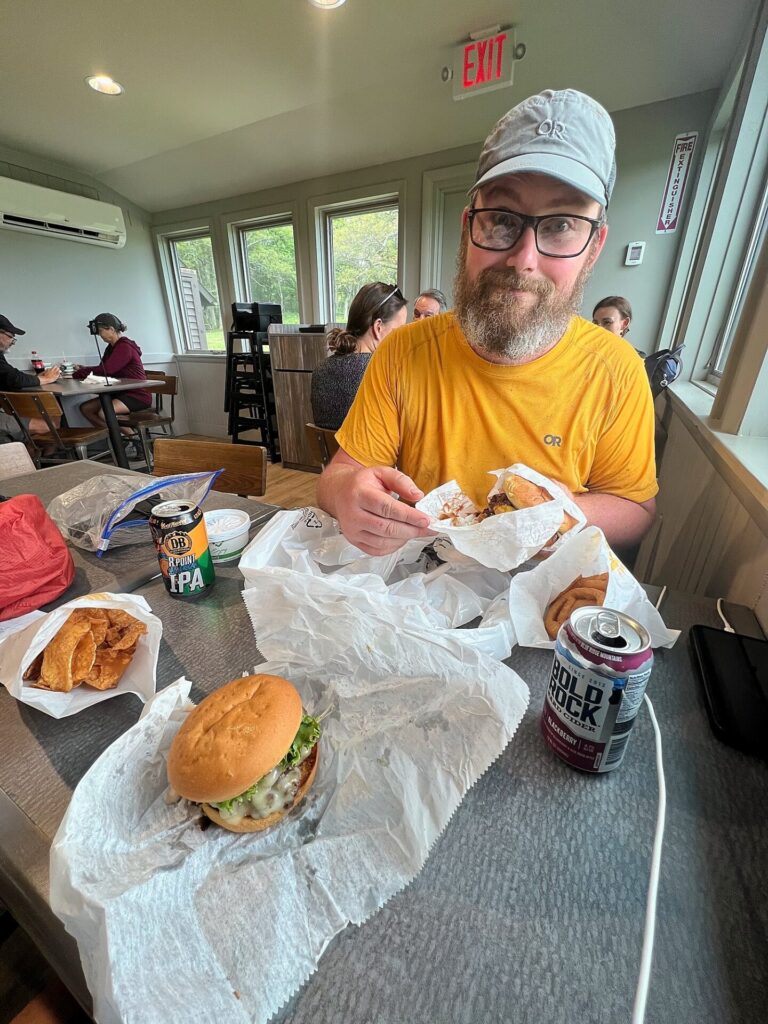 I also noted that Barrett was able to take a shower, and he remembers doing so. I do not remember this and don’t know why I wouldn’t have showered. 🤷♀️ I must have been so tired (and possibly knew we were just going to continue to get drenched) that I opted out. 🫠