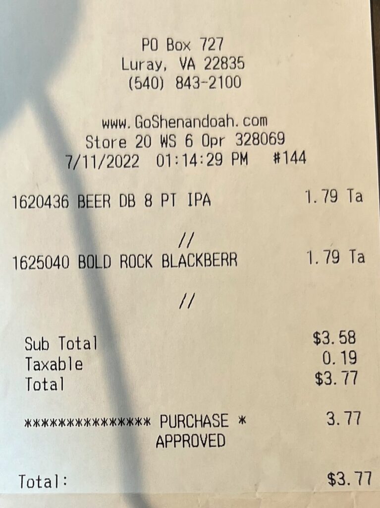 We got a very affordable meal at the Big Meadows Wayside and resupplied. I was mostly blown away by the pricing for the cider and beer! 😮