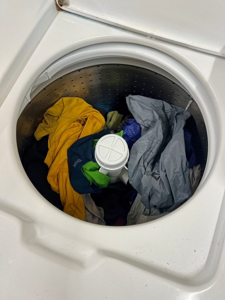 I don’t know where Barrett stored his clothes last night (probably in the bear box?), but the smell coming off them this morning is absolutely horrendous. 😹 Hands down the worst it’s ever been. I am gagging.
