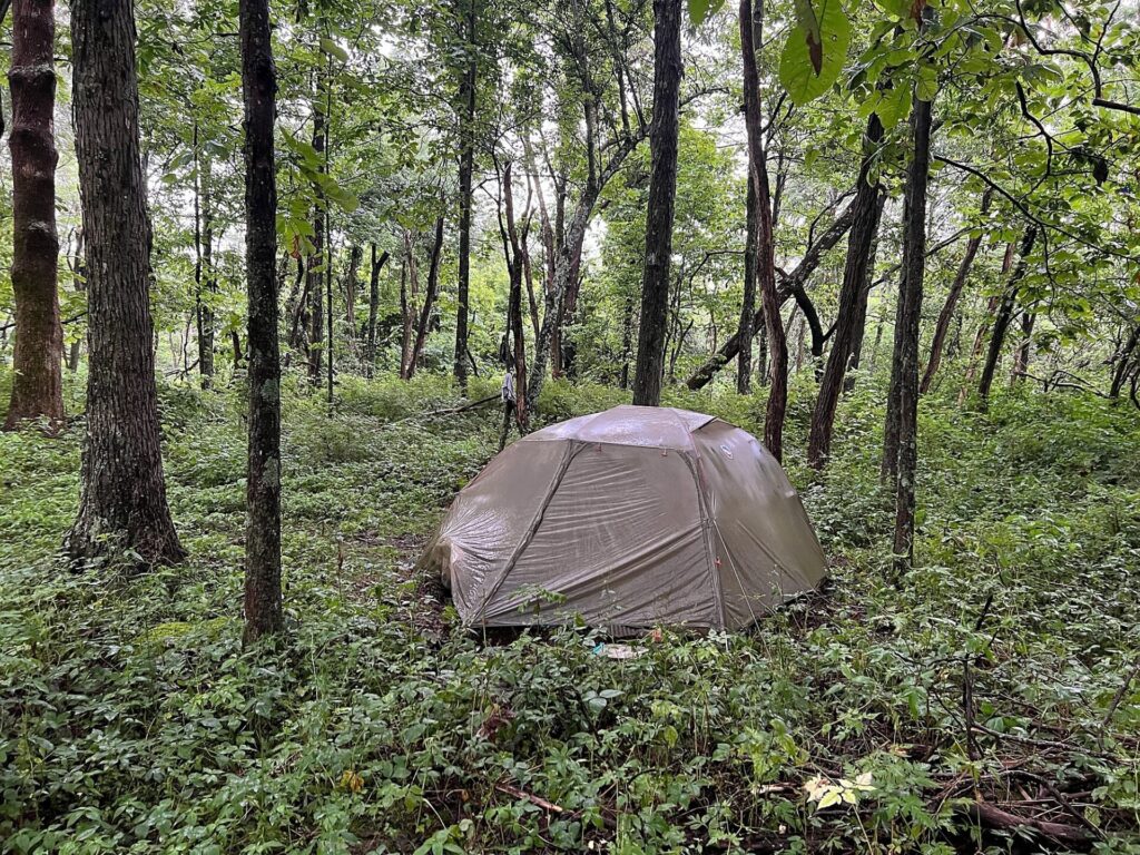 At the end of the day, the rain picked up for a bit, and we finally gave in, found the spot, and set up for the evening.